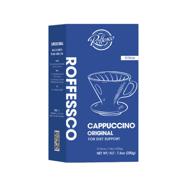 - Uống lạnh: Hoà 1 gói Roffesco Cappuccino Original với 60ml nước nóng, khuấy đều, thêm đá và thưởng thức.